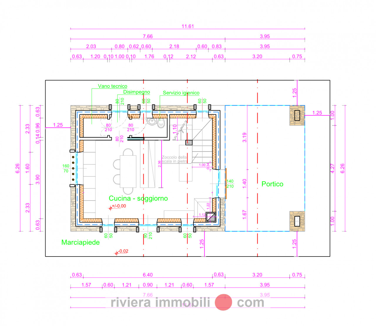 Il progetto prevede la costruzione di una abitazione su due livelli, con tetto a due falde e finiture estetiche secondo la tipologia in uso nella zona, con una zona giorno di 40 mq ed un portico di 20, mentre al primo piano (avente superficie lorda di 70 mq) sono previste tre camere e due bagni.